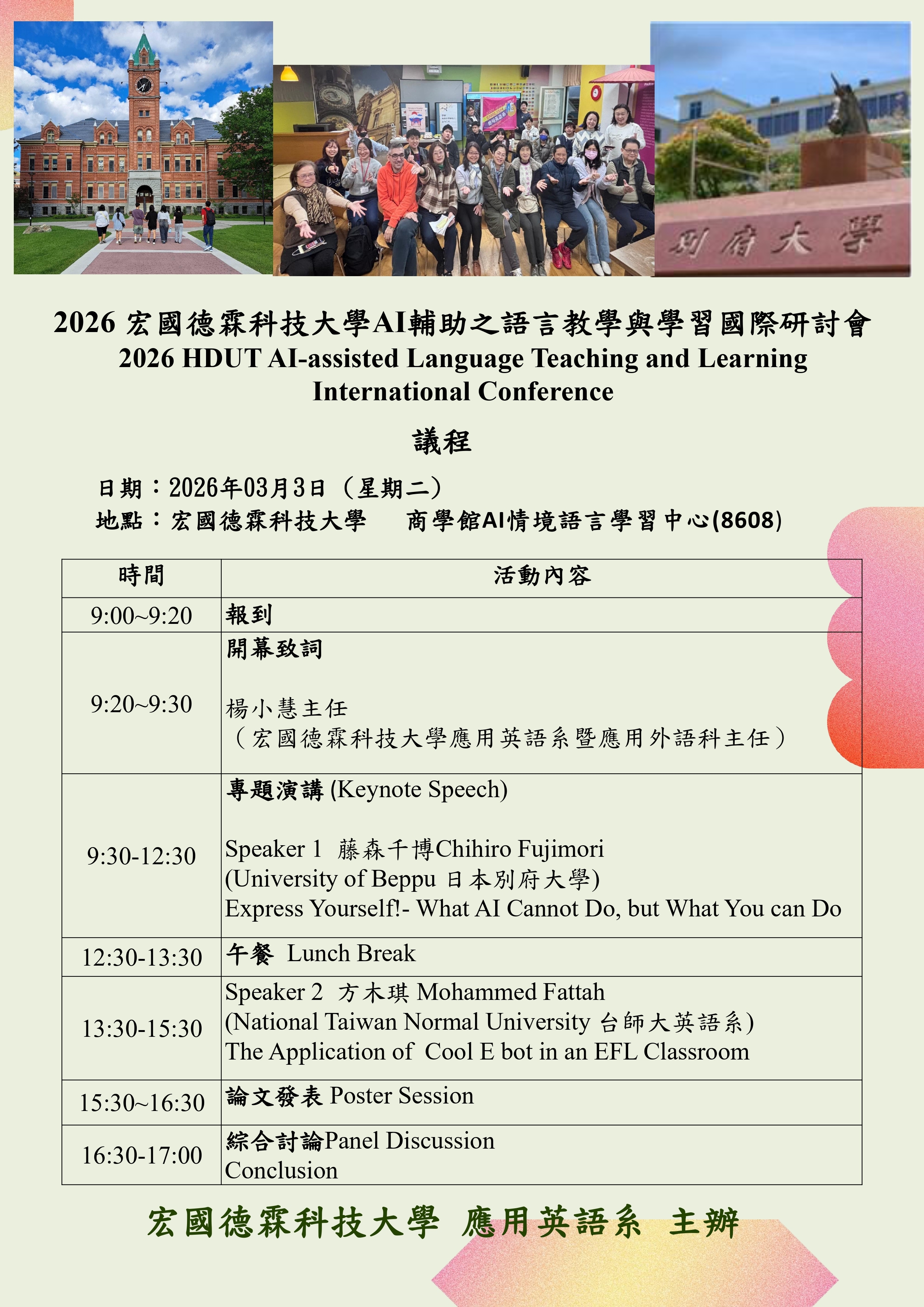 2026宏國德霖科技大學AI輔助之語言教學與學習國際研討會